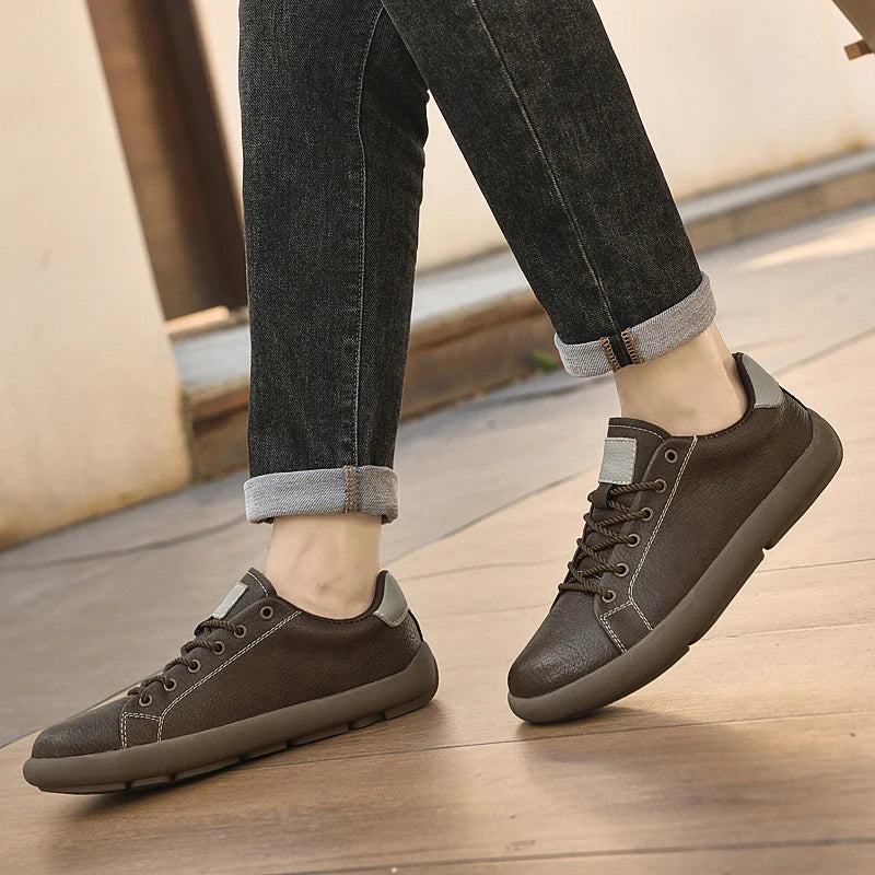 Genuine Leather Mens Casual Shoes New Design Male Sneakers Outdoor Lace-Up Skateboard Footwear Handmade Tenis Masculino Trainers