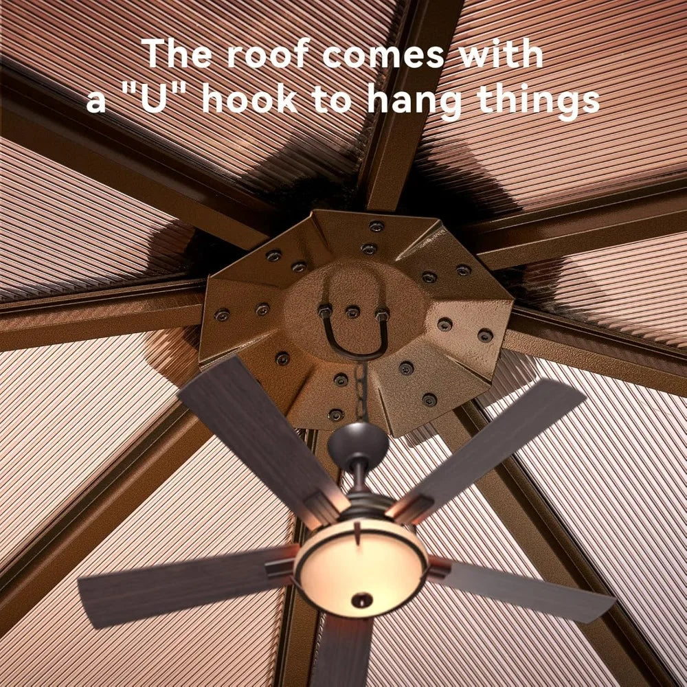 10' x 12' Gazebo Single Polycarbonate Top, Outdoor Aluminum Frame Permanent Gazebo with Curtains and Netting, for Patio
