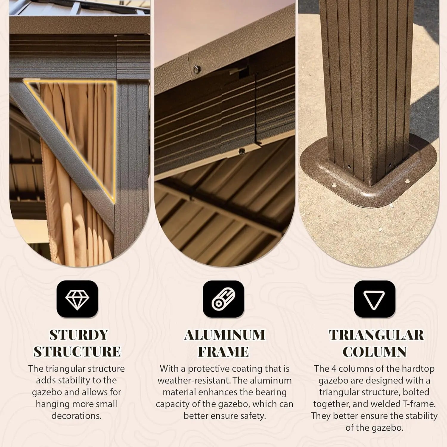 12' x 16' Hardtop Gazebo with Galvanized Steel Double Roof, Aluminum Pergolas Frame, Curtains and Netting Included,, Customized