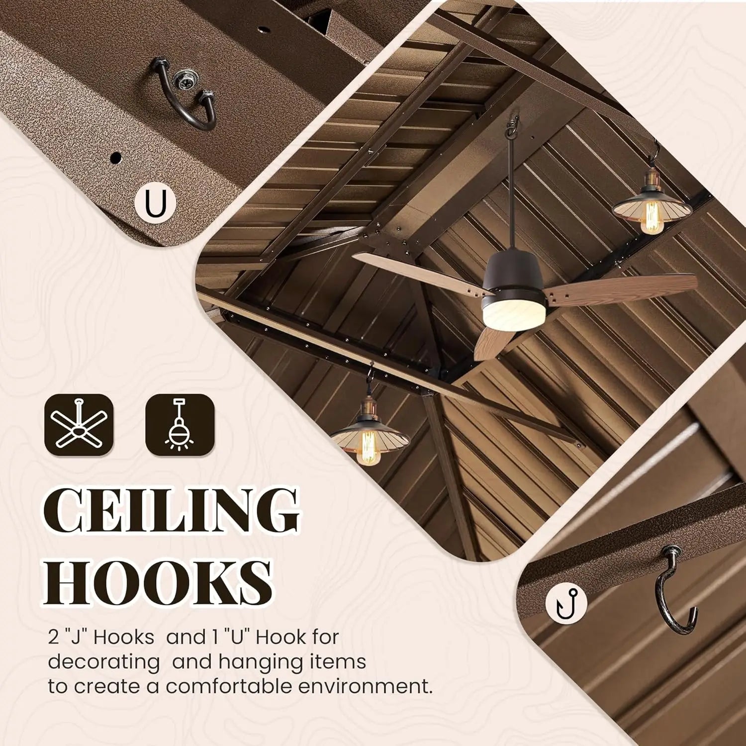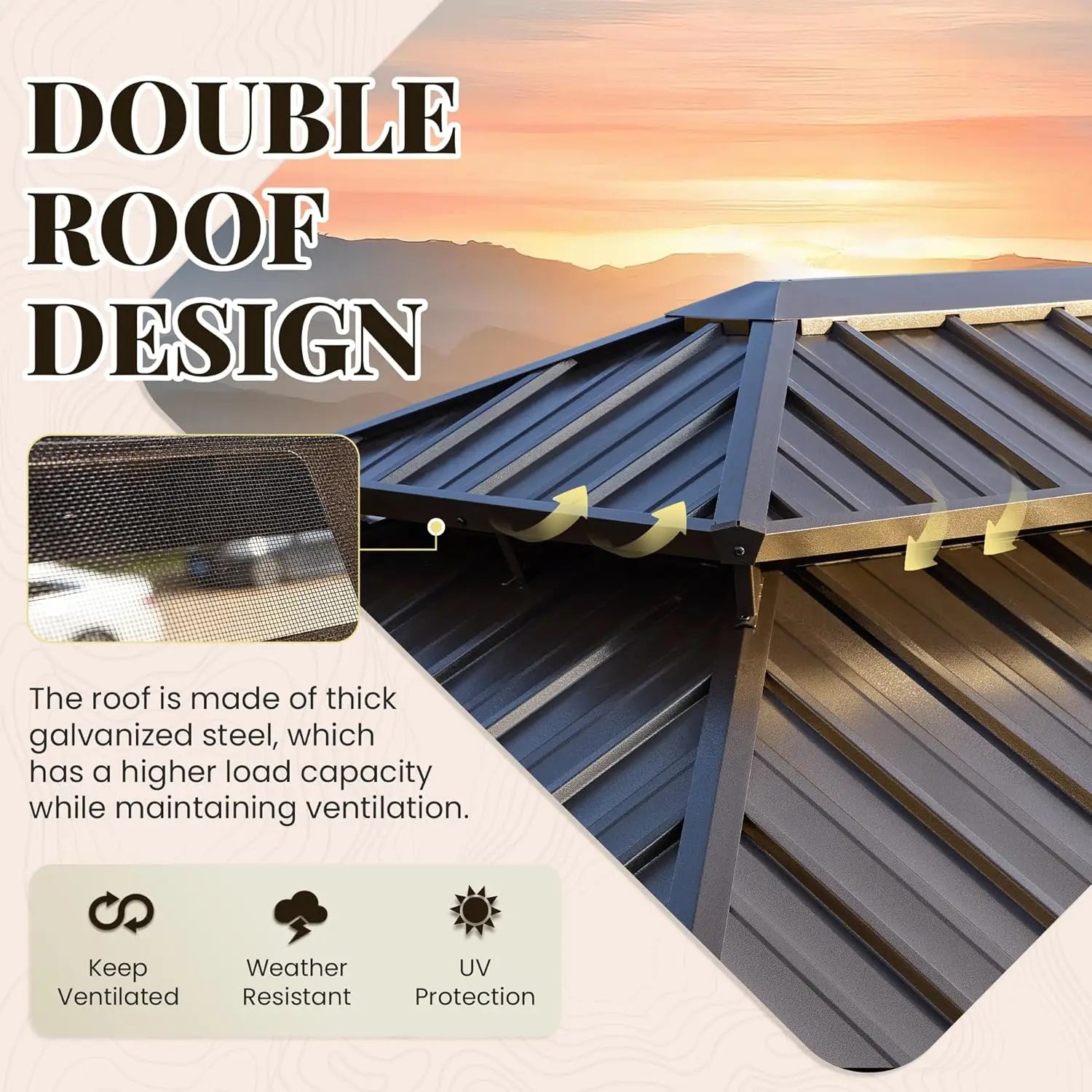 Gazebo Premium 12' x 16' con Tetto Rigido in Acciaio Galvanizzato - Pergola da Giardino Personalizzabile